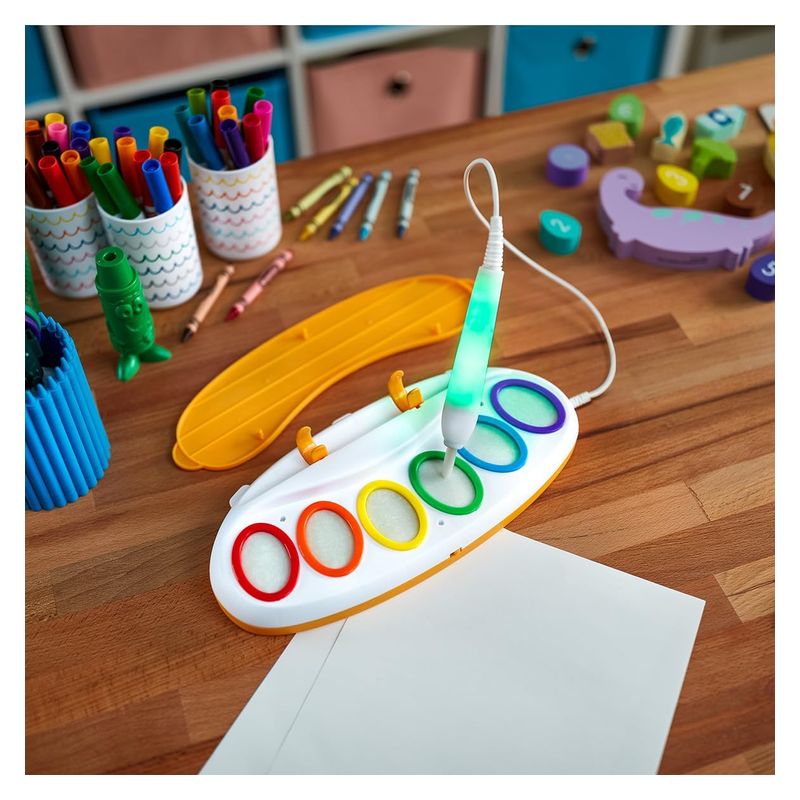 El Crayola Color Wonder Magic Light Up pinta sin manchas 75-7131 es un innovador set de dibujo diseñado para que los niños disfruten del color sin preocupaciones, ofreciendo una experiencia artística totalmente limpia, segura y sorprendente. Gracias a la tecnología Color Wonder, este kit permite pintar únicamente sobre papel especial: los rotuladores son completamente transparentes sobre ropa, piel, muebles o paredes, eliminando el riesgo de manchas accidentales. Además, el tablero Magic Light Up incorpora iluminación interactiva que se activa mientras se pinta, haciendo que cada trazo cobre vida con efectos visuales que aumentan la diversión y la motivación creativa.