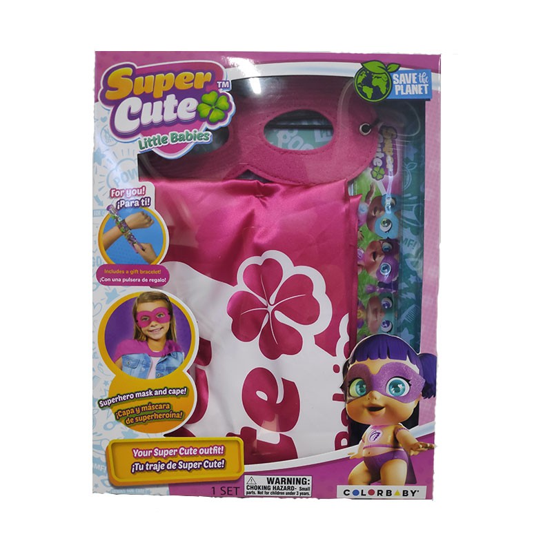 Disfraz para niñas color rosa con capa y antifaz de Super Cute