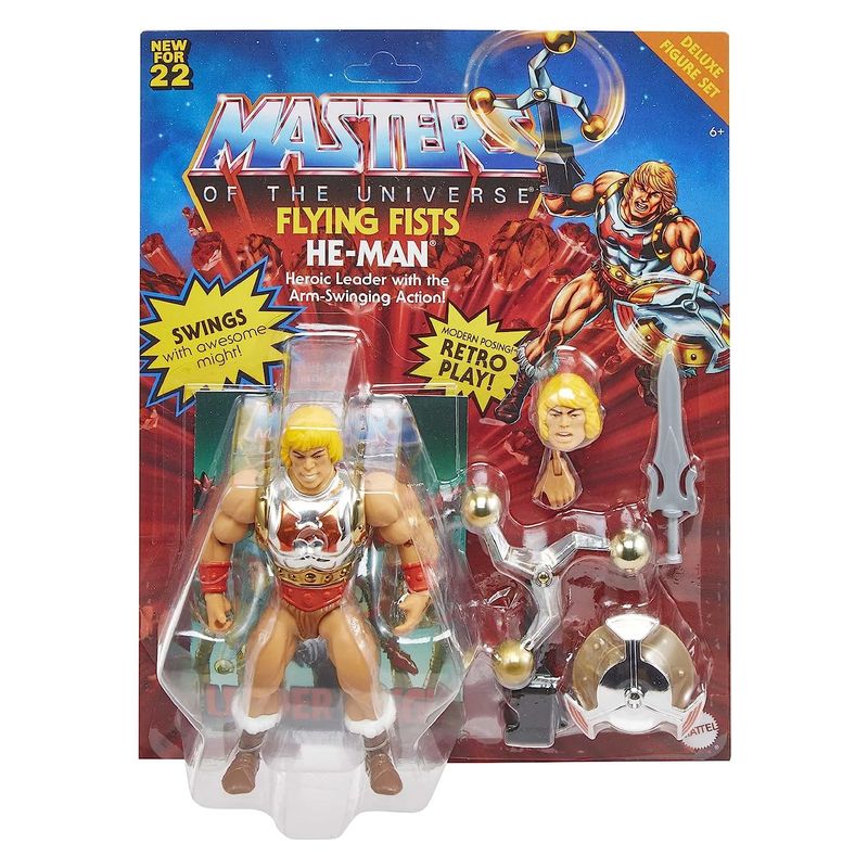 Haz tu pedido hoy del producto Figura acción Masters of the Universe Origins He-Man puño volador con una edad recomendada de Más de 4 años y unas dimensiones de 15x10x4. Siendo su referencia de proveedor HDT22 MATTEL, y un código de barras 0194735030910