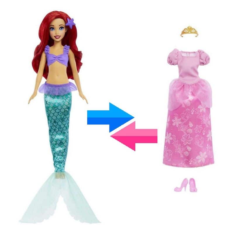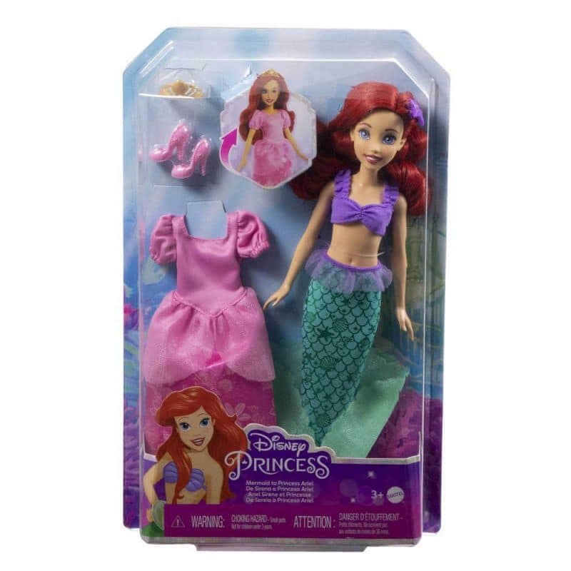 Muñeca Disney Princesa Ariel cambia el look de sirena a princesa HMG49