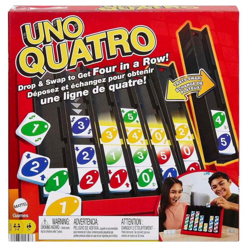 Haz tu pedido hoy del producto Juego de mesa UNO Quatro cuatro en raya con fichas HPF82 MATTEL con una edad recomendada de A partir de 7 años y unas dimensiones de 25x20x5. Siendo su referencia de proveedor HPF82 MATTEL, y un código de barras 0194735157563