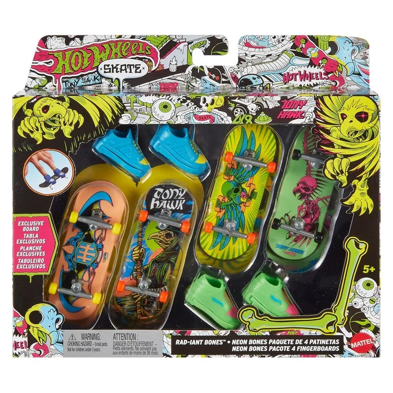 Pack tablas Hot Wheels Skate Calaveras fingerboard Tony Hawk HXK84 MATTEL