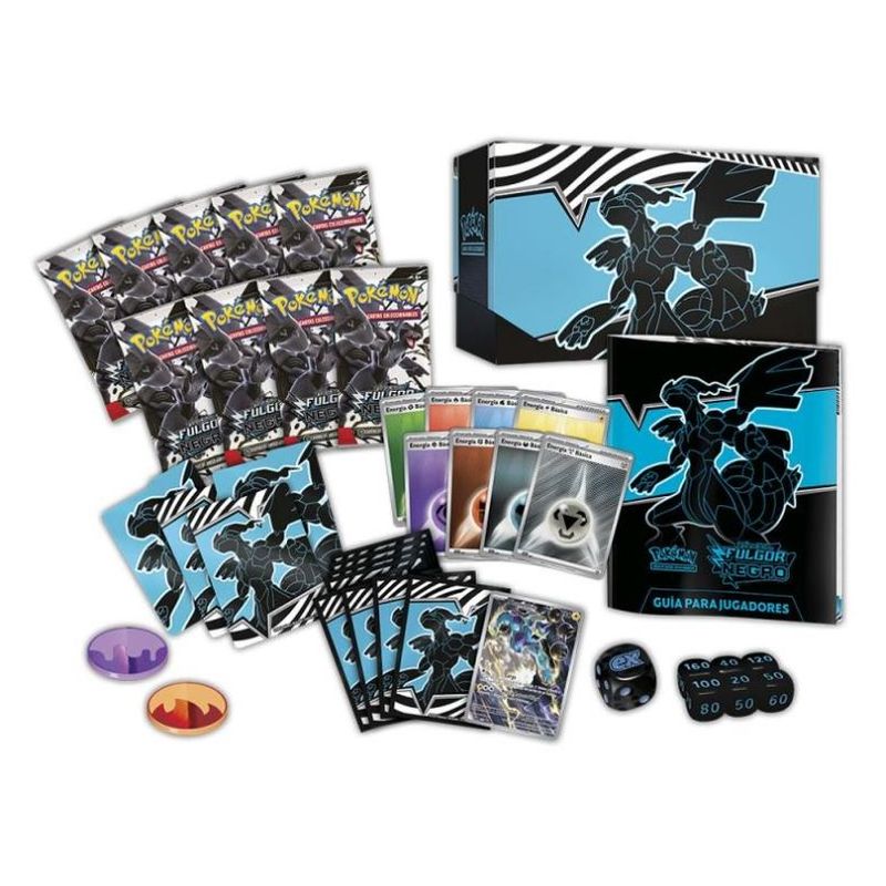 La Caja Entrenador Élite Pokémon TCG Fulgor Negro – Cartas Coleccionables Escarlata y Púrpura PC10037B incluye una cuidada selección de artículos oficiales Pokémon TCG diseñados para apoyar tanto el juego competitivo como la organización de la colección. Generalmente, este formato de caja ofrece: