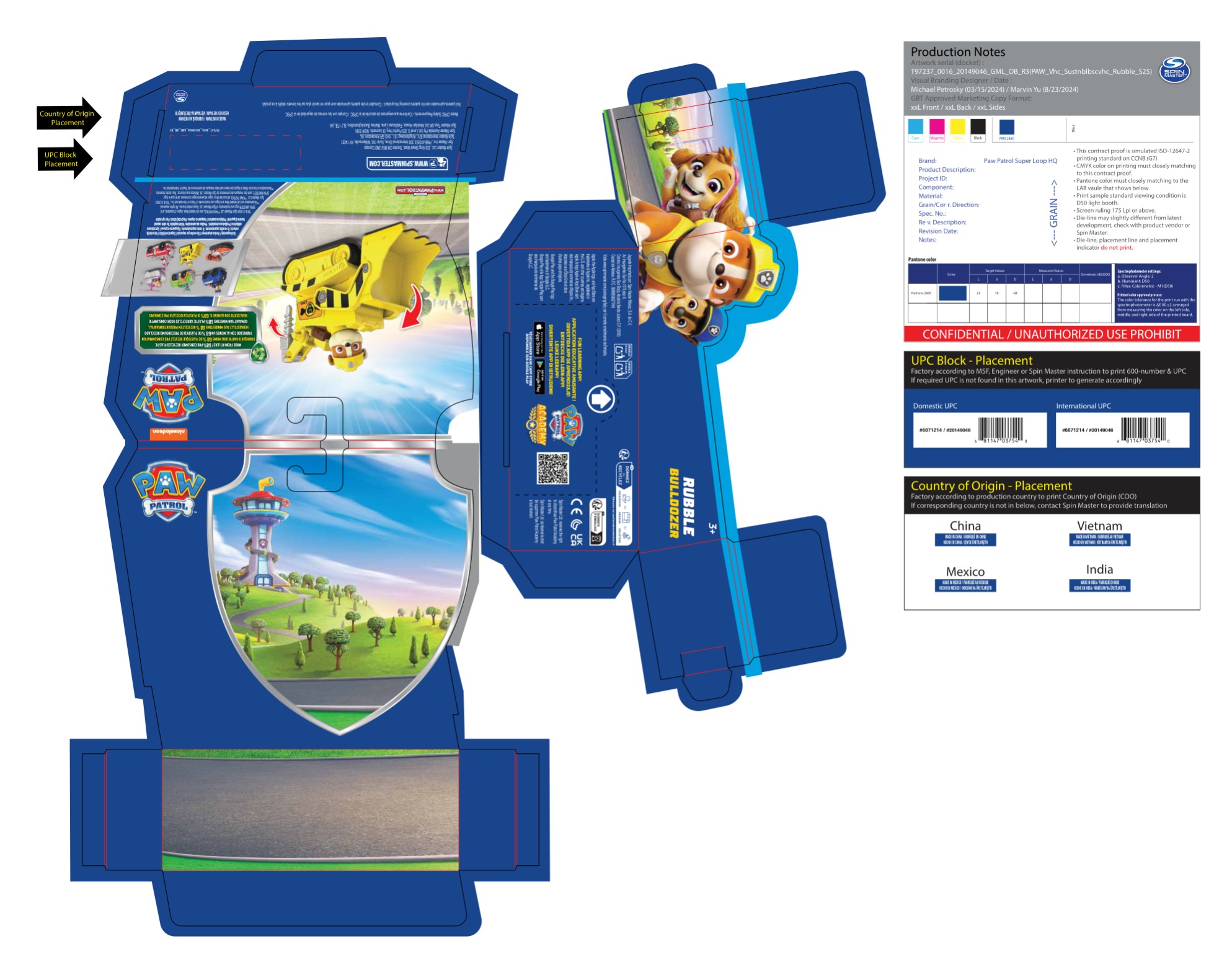 La figura articulada de Rubble viene con su casco de seguridad y su uniforme de trabajo, mientras que la excavadora cuenta con pala frontal móvil y ruedas giratorias, ideal para levantar y empujar materiales imaginarios.