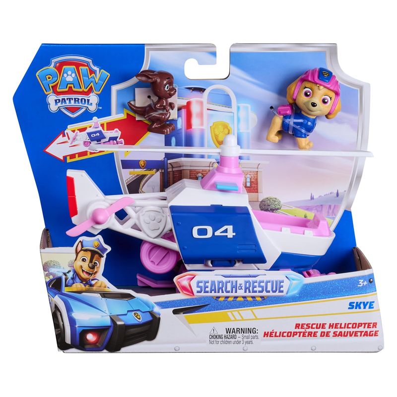 - Pack completo: helicóptero de rescate + figura de Skye + canguro para empezar a jugar desde el primer momento.