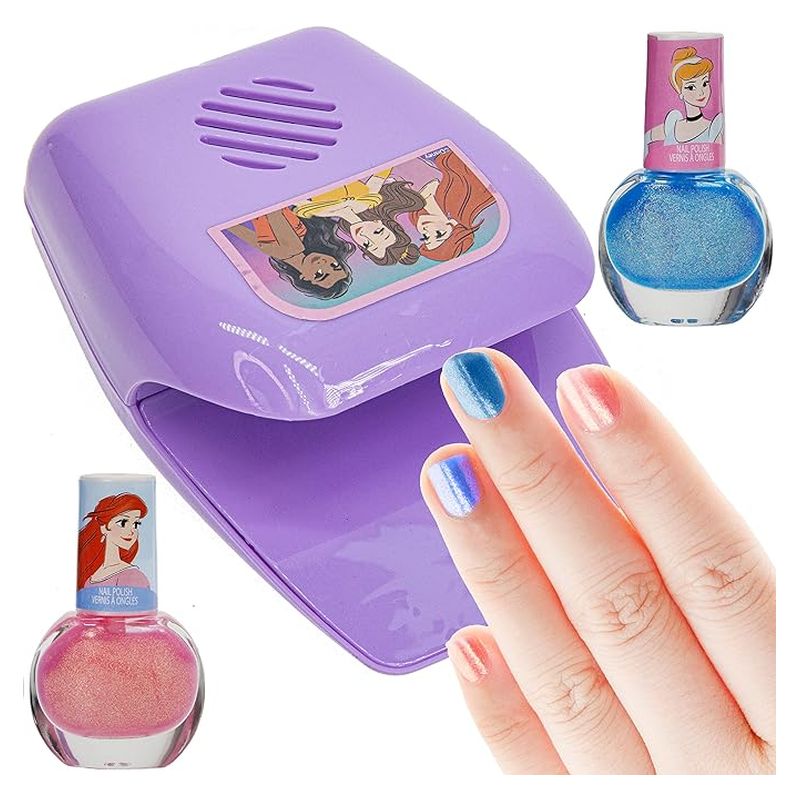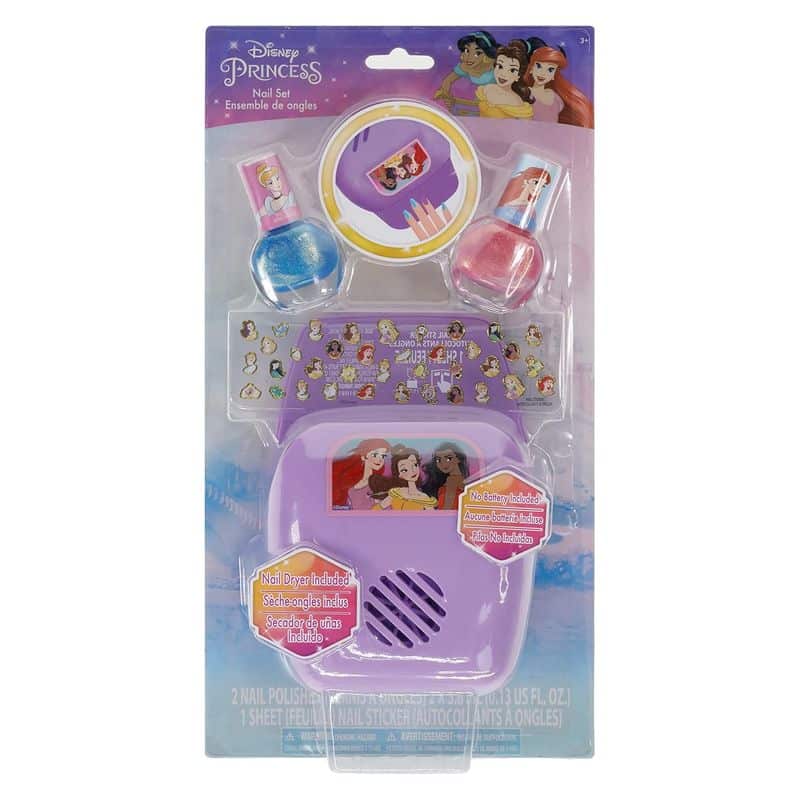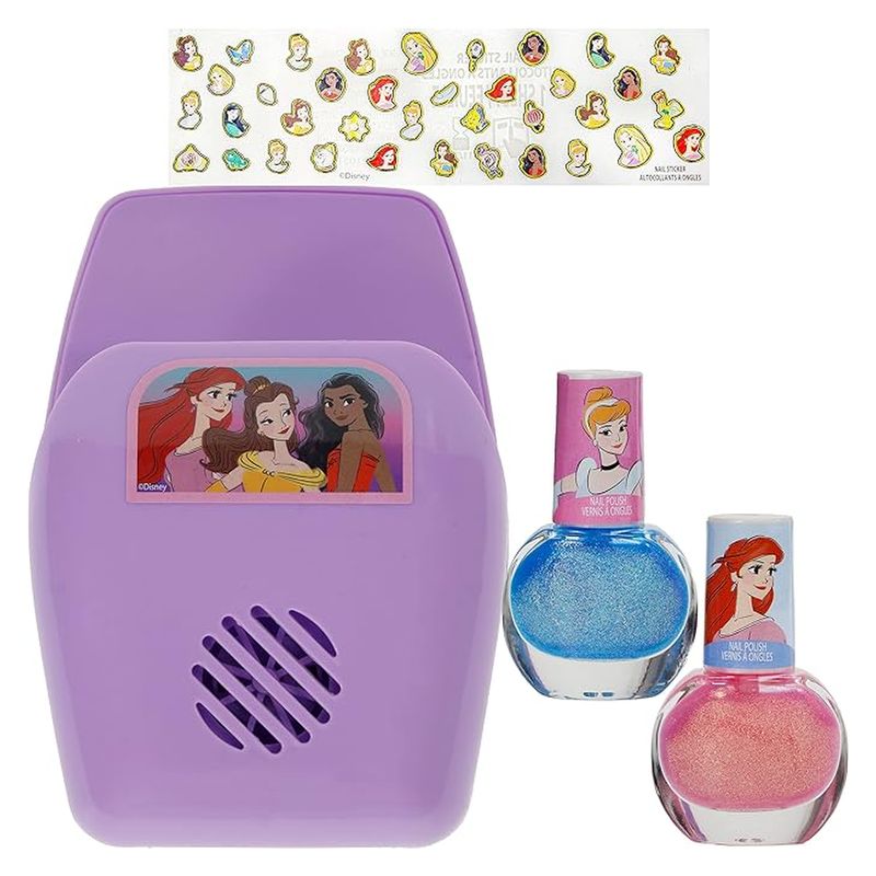 Set mini secador de uñas de Princesas Disney con pegatinas y pintauñas