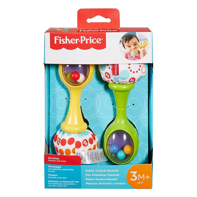 Fisher Price Maracas musicales de Mattel. Este juguete para bebés esta diseñado con un tamaño perfecto para sus manitas. Sus 2 maracas coloridas, tienen unos pompones con una textura suave y blandita. Agítala suavemente y escuha el sonido que reproducen las bolitas de su interior. :+3 meses.