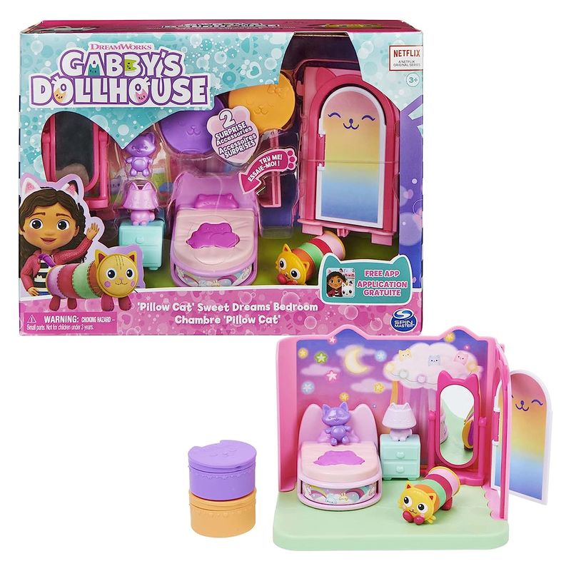 Haz tu pedido hoy del producto La casa de muñecas de Gabby el dormitorio de Sueñigata con accesorios con una edad recomendada de A partir de 3 años y unas dimensiones de 26x19x6. Siendo su referencia de proveedor 6062037 SPIN MASTE, y un código de barras 0778988374115