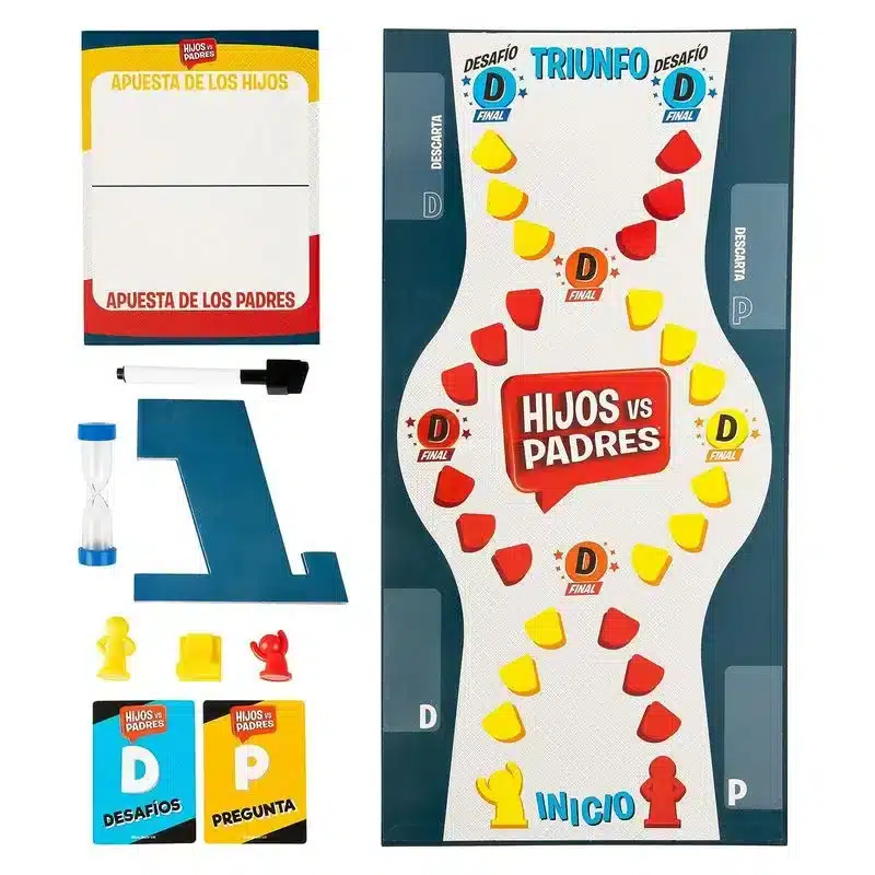 El Juego de mesa Hijos vs Padres 6065093 de Spin Master es una entretenida propuesta que enfrenta a generaciones en un desafío de preguntas y respuestas, ideal para disfrutar en familia.