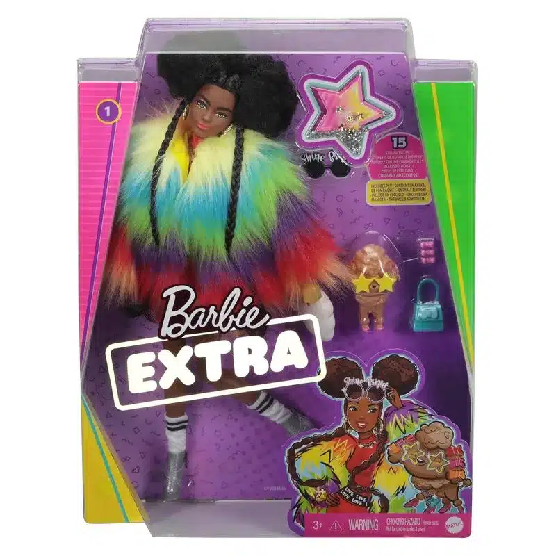 Muñeca Barbie Extra pelo afro Shine con mascota y accesorios GVR04 MATTEL