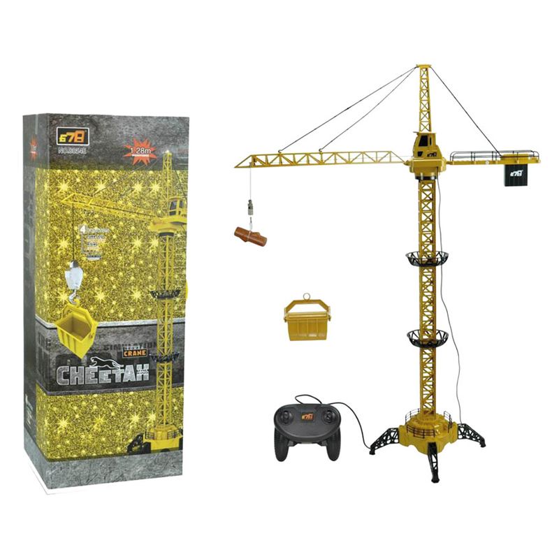Grúa de obra amarilla con control 26013