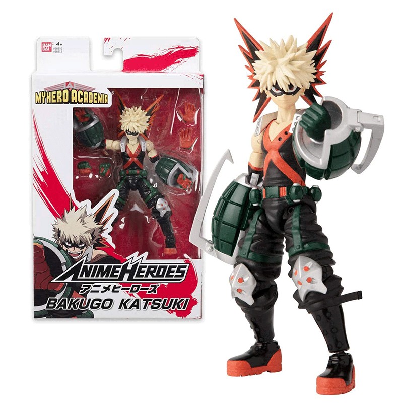 Bakugo Katsuki figura Heroes de anime. Fabricado por Bandai. Figura articulada de 17 cm. de altura. Dimensiones del producto: 6 x 15.2 x 25.4 cm. Edad minima recomendada por el fabricante: a partir de 4 años.