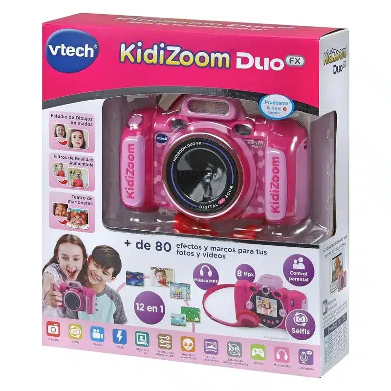Haz tu pedido hoy del producto Cámara de fotos infantil con efectos Kidizoom Duo FX rosa 80-519957 VTECH con una edad recomendada de Más de 3 años y unas dimensiones de 16x6x1. Siendo su referencia de proveedor 80-519957 VTECH, y un código de barras 3417765199578