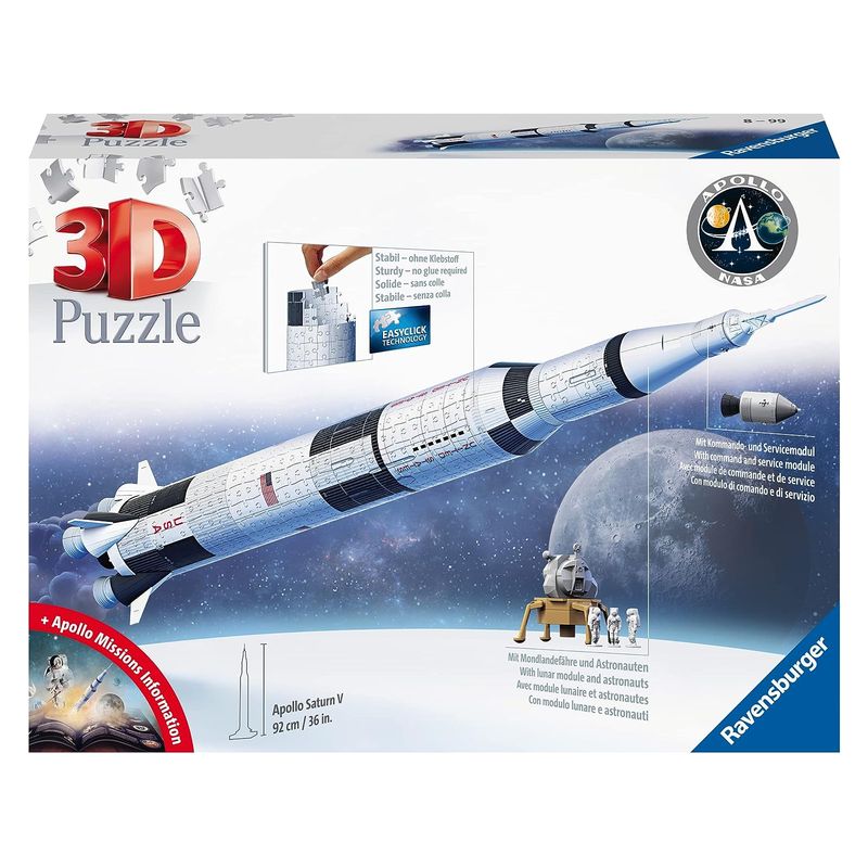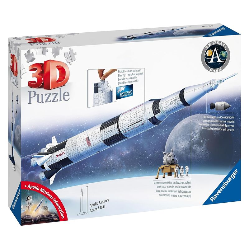Puzzle 3D misión Apollo Saturno V Rocket de 440 piezas Ravensburger – Más de 8 años