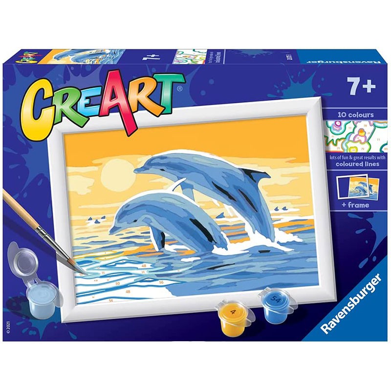 Kit de pintura creativa CreArt delfines amigos con pinceles y marco