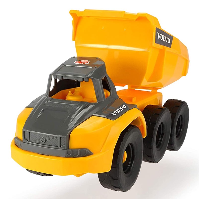 Camión volquete de juguete volvo de 26 cm y color amarillo y gris