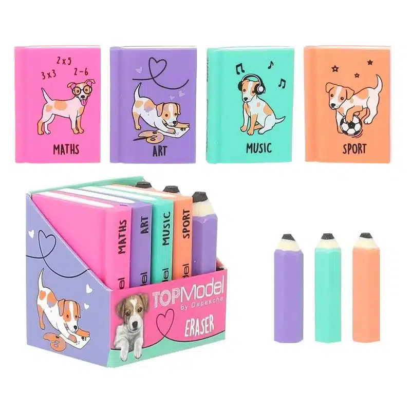 Set de gomas con forma de mini lubros y lápices Top Model Depesche 12443