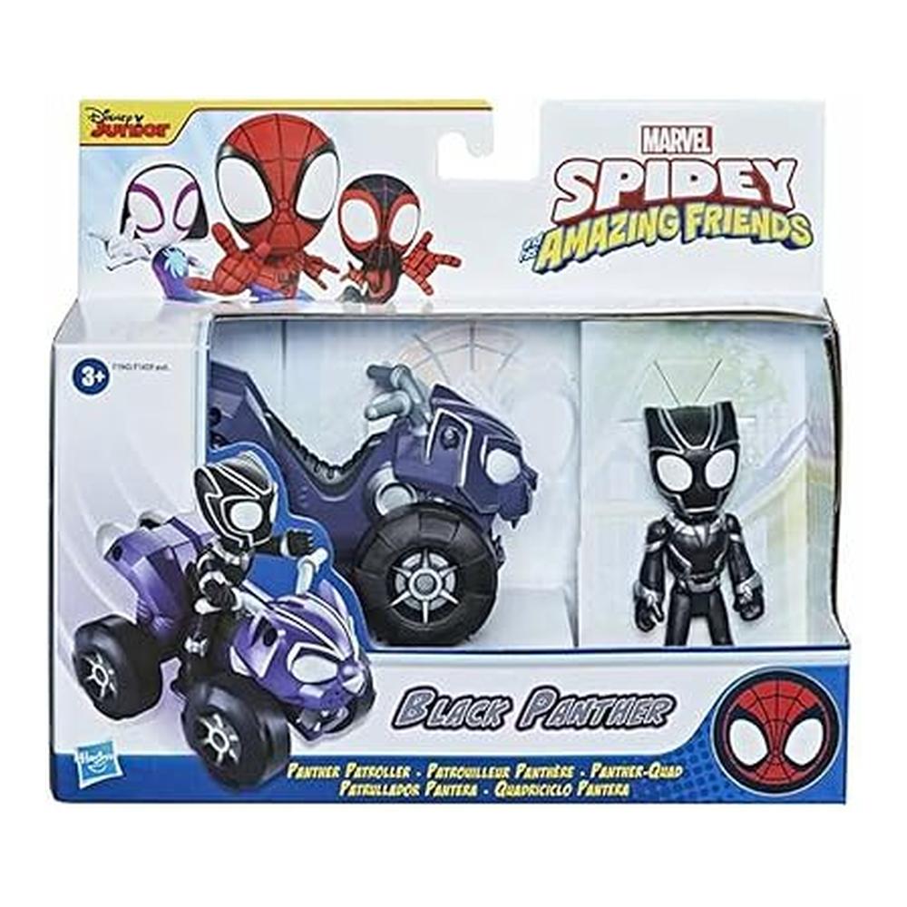 Figura Hasbro Marvel Black Panther con Vehículo Patrulla Spidey and Friends F1459