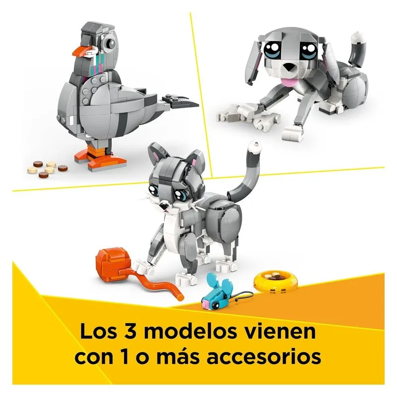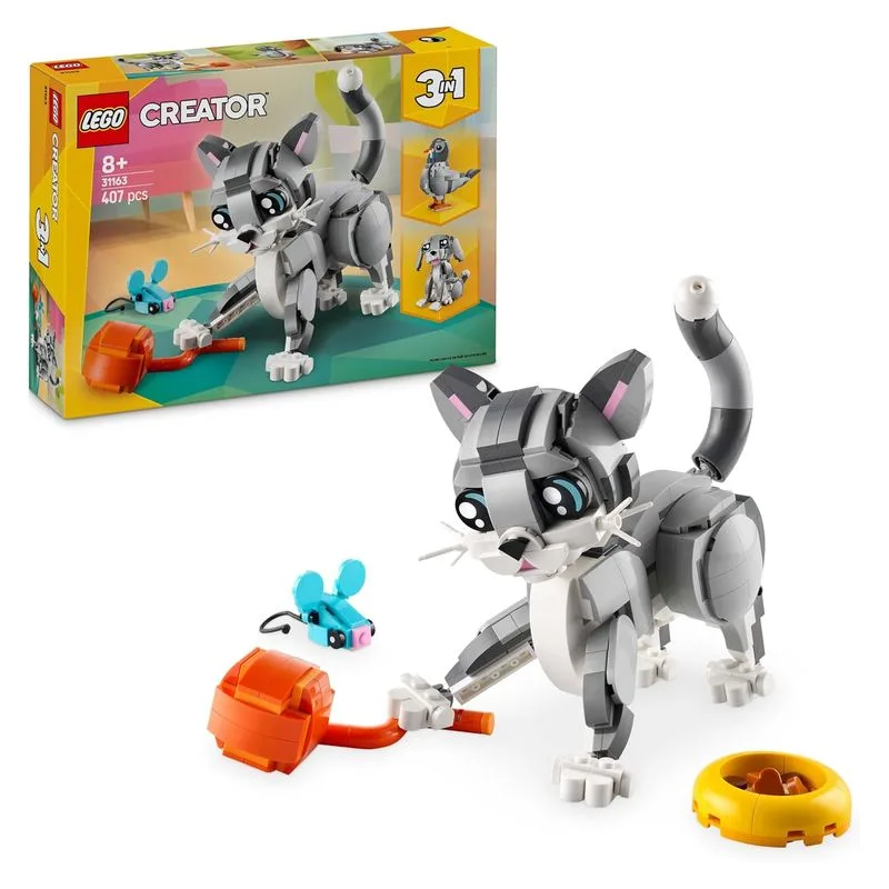 Haz tu pedido hoy del producto LEGO Creator 31163 3en1 Gato Juguetón Transformable en Perro o Paloma con una edad recomendada de Más de 8 años y unas dimensiones de 19x26x6. Siendo su referencia de proveedor 31163 LEGO, y un código de barras 5702017822389