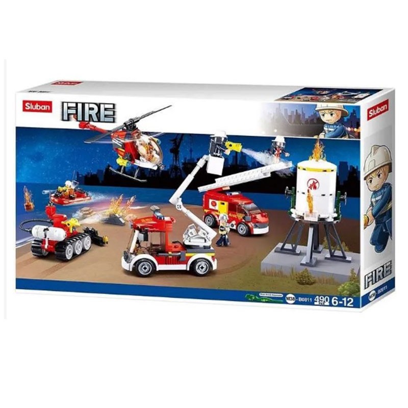 Sluban Set rescate de bomberos de 490 piezas con vehículos y figuras