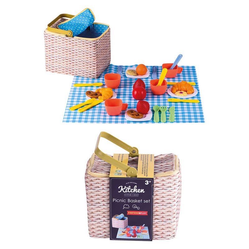 El juego resultante es altamente beneficioso para el desarrollo infantil. La CESTA DE PICNIC (32PC) 25887 estimula el juego simbólico, esencial para adquirir habilidades sociales y emocionales. Mientras interpretan distintos roles, como anfitriones, invitados o cocineros, los niños desarrollan el lenguaje, la creatividad y la empatía. También practican normas sociales básicas como esperar turno, compartir o agradecer, integrando valores fundamentales a través del juego.