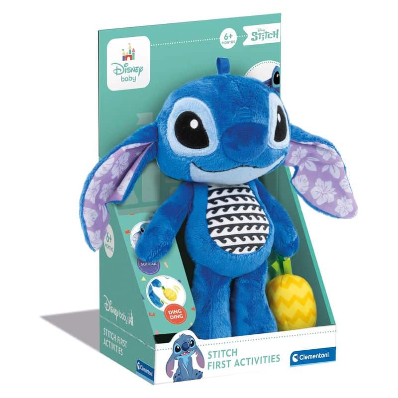 El Peluche de Actividades Stitch de Clementoni es un juguete diseñado para acompañar y entretener a los bebés desde los 6 meses de edad. Inspirado en el entrañable personaje de Disney, este peluche combina suavidad, colores vibrantes y diversas actividades sensoriales para estimular el desarrollo temprano de los niños.
