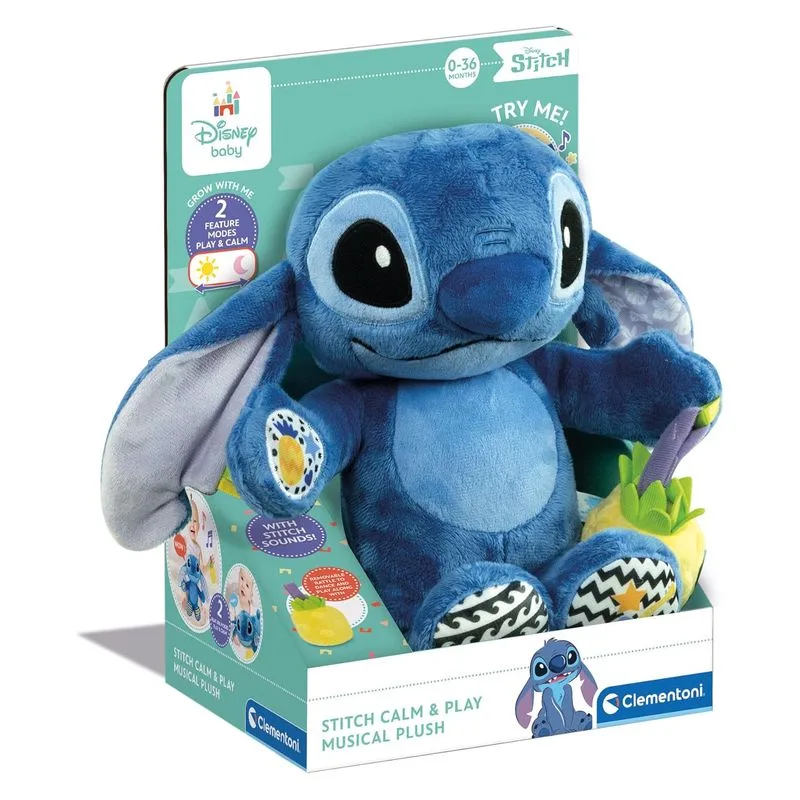 El adorable Stitch Peluche Musical Disney (Ref. 179879) de CLEMENTONI es el compañero perfecto para los más pequeños. Inspirado en el icónico personaje de Lilo & Stitch, este peluche interactivo emite sonidos y melodías suaves que estimulan los sentidos y acompañan al niño durante el juego o el descanso.