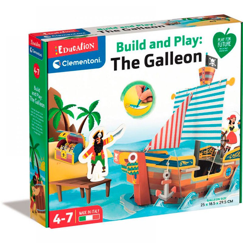 Juego infantil para construir un Galeón en 3D con siluetas de cartón