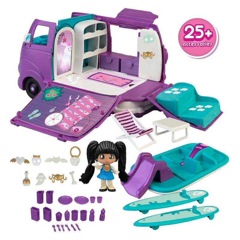 Caravana Terrific Van de Pinypon morada transformable en barca con tobogán – Más de 4 años
