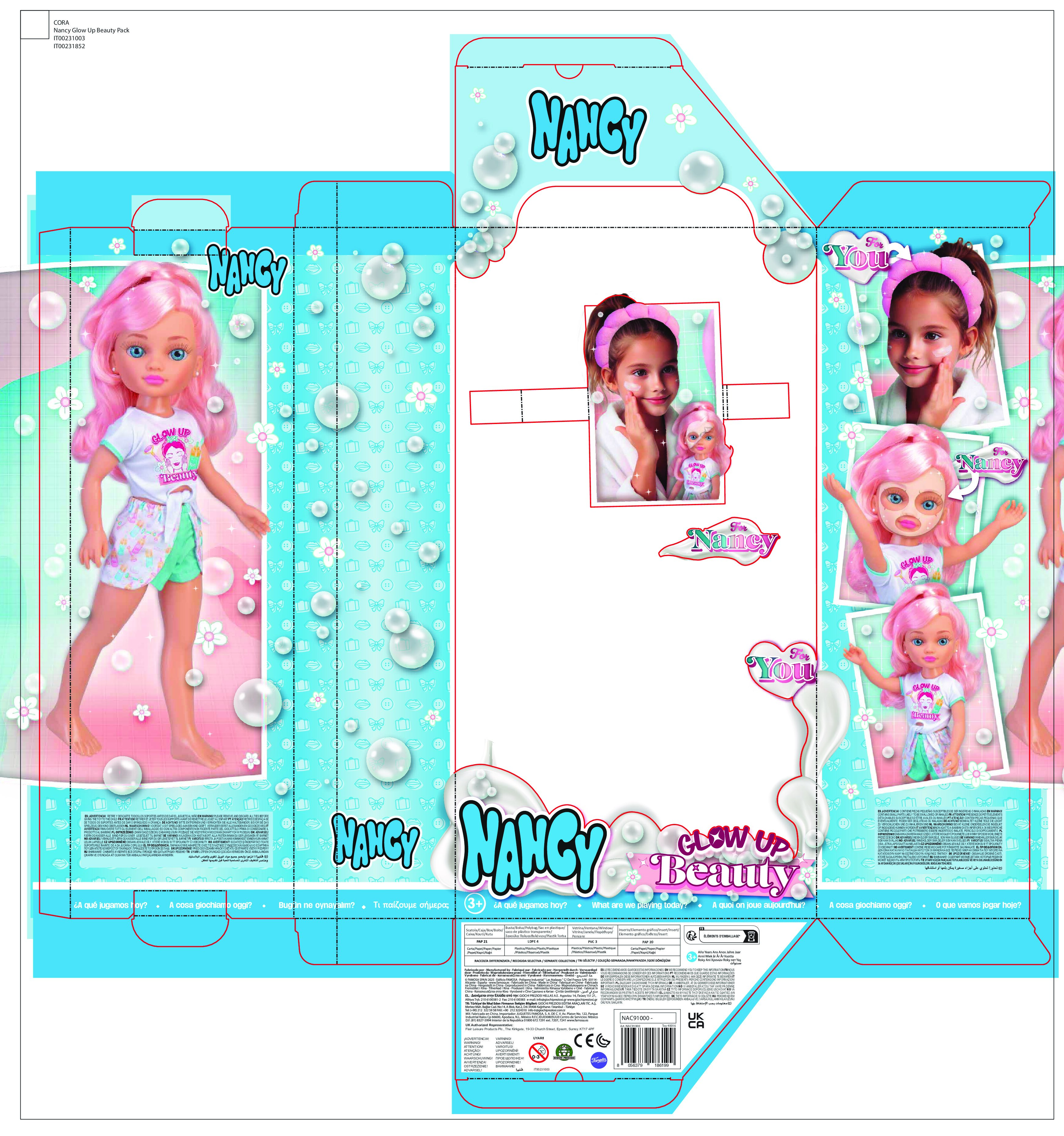 La Nancy Glow Up Beauty Belleza (modelo NAC91000) de FAMOSA es la muñeca ideal para niños y niñas que aman el mundo de la moda, el maquillaje y el cuidado personal. Con su set completo de belleza, Nancy está lista para un cambio de look espectacular lleno de color, luz y estilo.