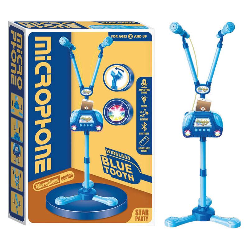 Micrófono Bluetooth azul Star Party con soporte y luz 25832