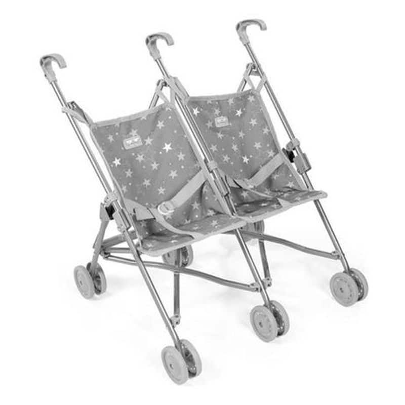 Preciosa sillita gemelar de bastón de color gris, con la que pasear hasta 2 muñecas a la vez, producto oficial de la colección Mini Gaby