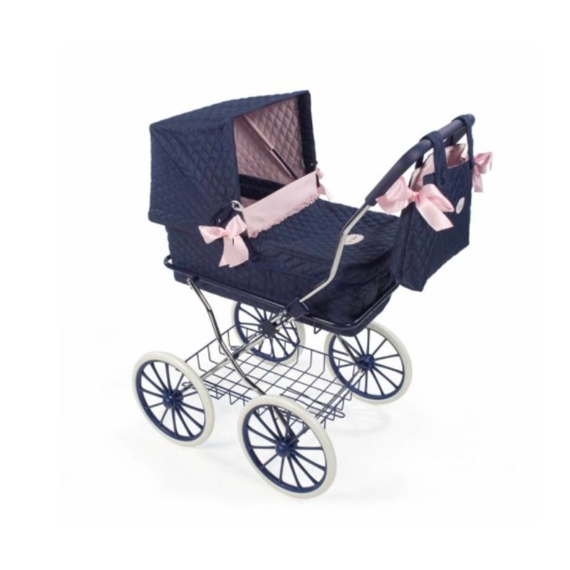 Cochecito para muñecas vintage azul marino
