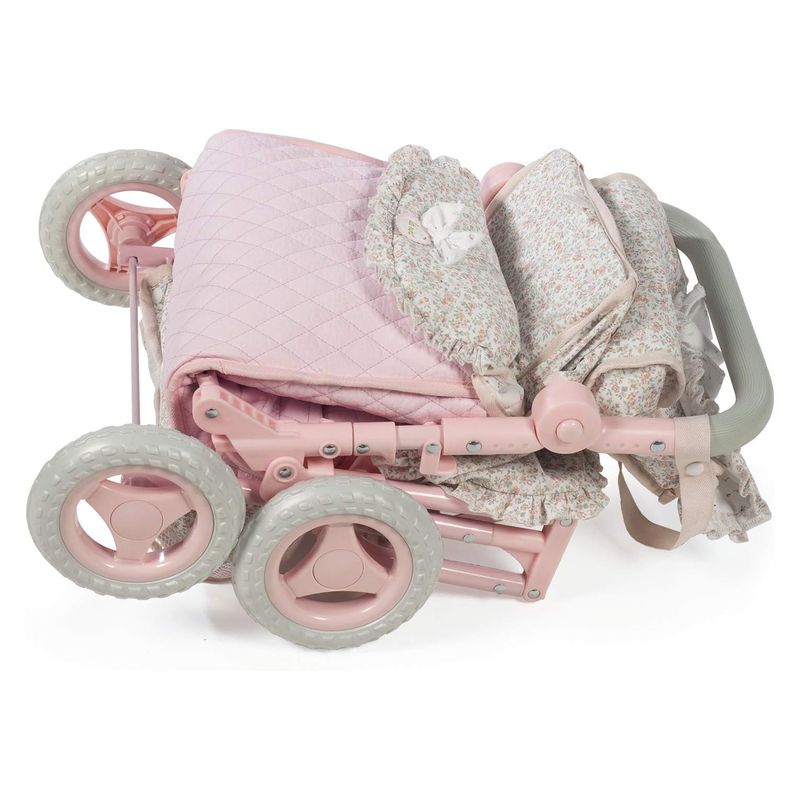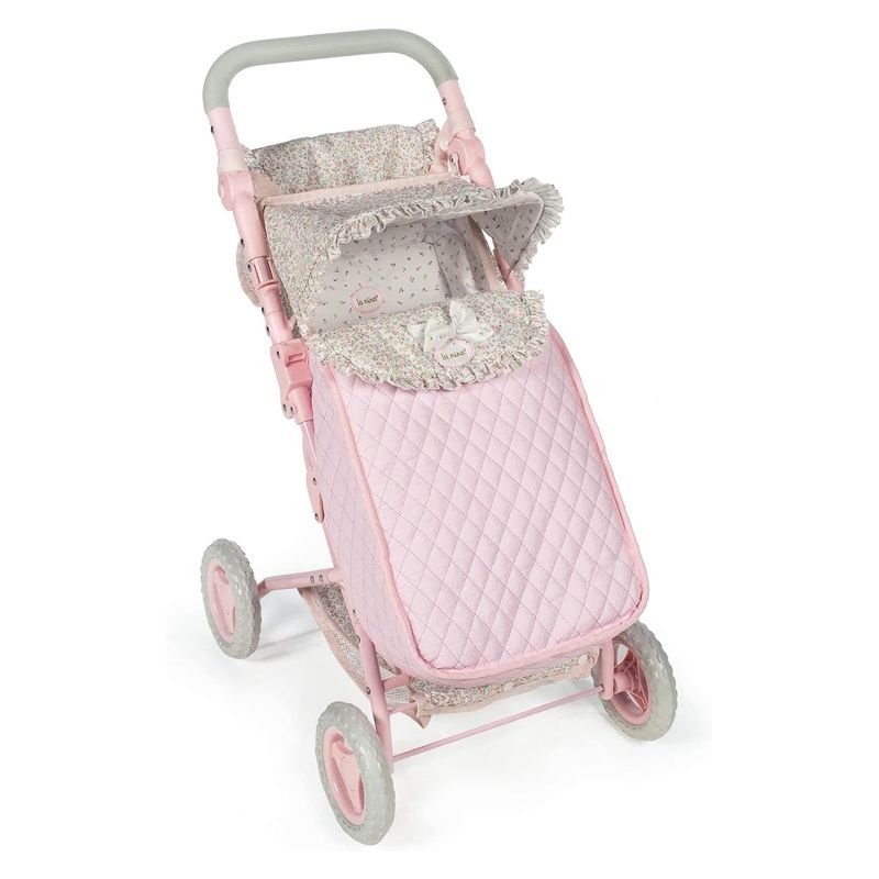 Lleva de paseo a tu muñeca en la cómoda sillita plegable con saco de color violeta con flores de la colección La Nina.