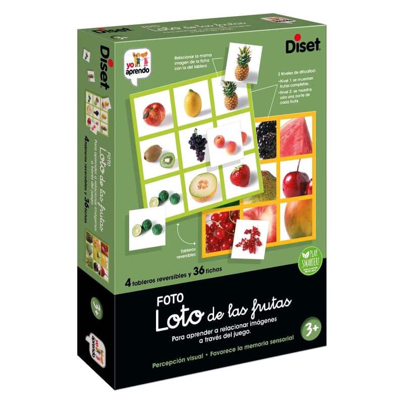 Haz tu pedido hoy del producto Foto loto de las frutas Yo Aprendo 68943 Diset juego educativo de imágenes con una edad recomendada de Más de 3 años y unas dimensiones de 27x20x6. Siendo su referencia de proveedor 68943s1120200270 D, y un código de barras 8410446689431