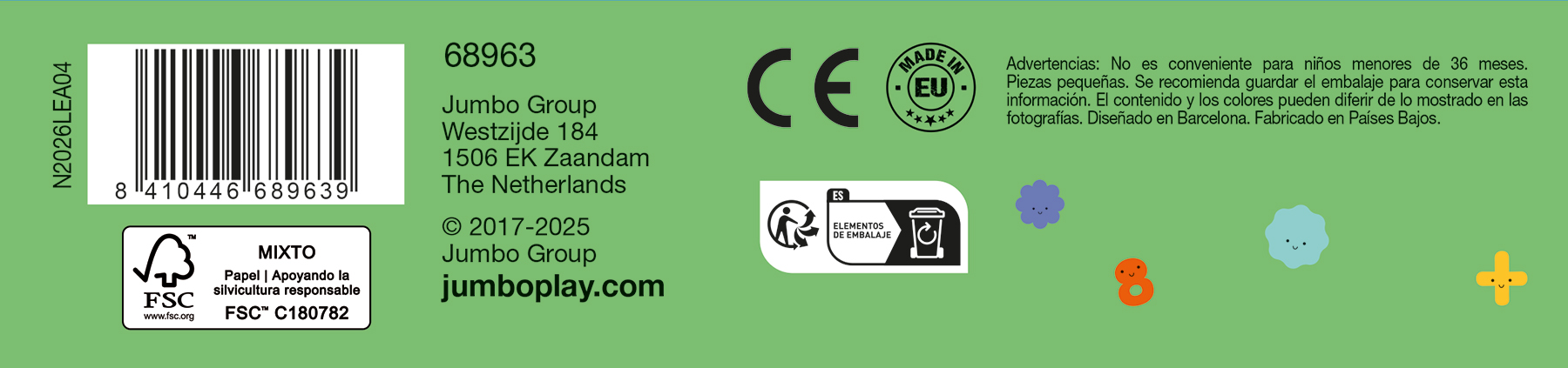 Educativa El Abecedario de Diset es un juego que ayuda a los niños a aprender las letras del abecedario, su orden y como es cada una en mayuscula y minuscula gracias a las fichas que incorpora con ilustraciones de las letras del abecedario y los dibujos que posee. Cada letra del abecedario es un puzzle de color distinto, lo que ayuda al niño a poder montarlo al tener que fijarse en que coincida el punto de color que hay entre los puzzles para poner el abecedario en orden. Incorpora 27 puzzles de 2 piezas y una guia. Dimensiones: 6,3 x 0,1 x 10,5 cm Edad: +4 años.
