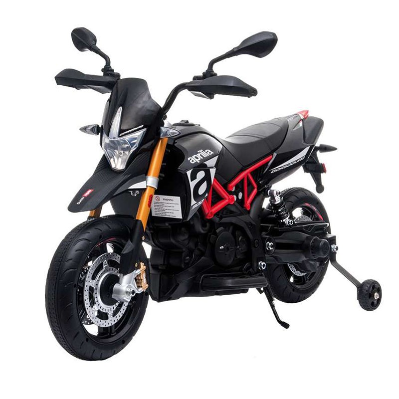 Moto Aprilia negra de batería de 12V para niños y dos motores de 18W