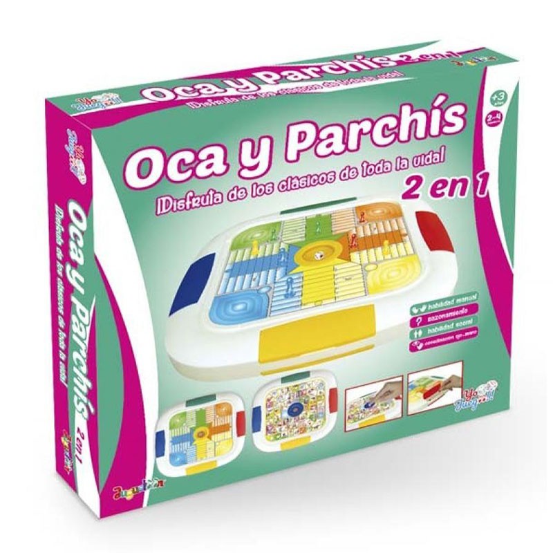 Oca y parchis clasicos, Juego de mesa familiar 2 en 1 de habilidad