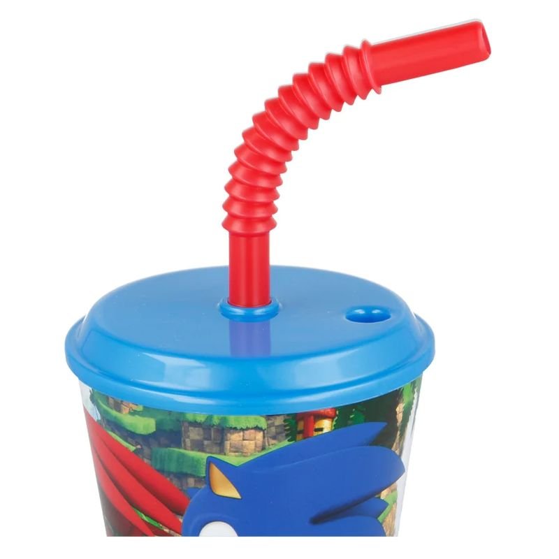 Vaso infantil reutilizable Sonic, Knuckles y Tails con tapa y pajita 430ml