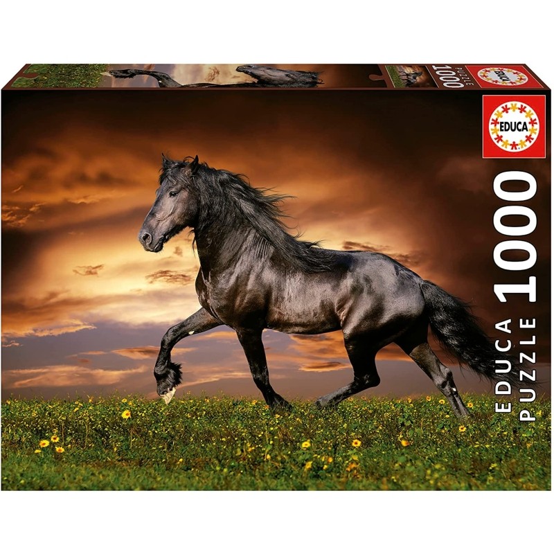 Sé el primero en valorar “Puzzle 1000 piezas caballo negro al trote en pradera educa 19555”