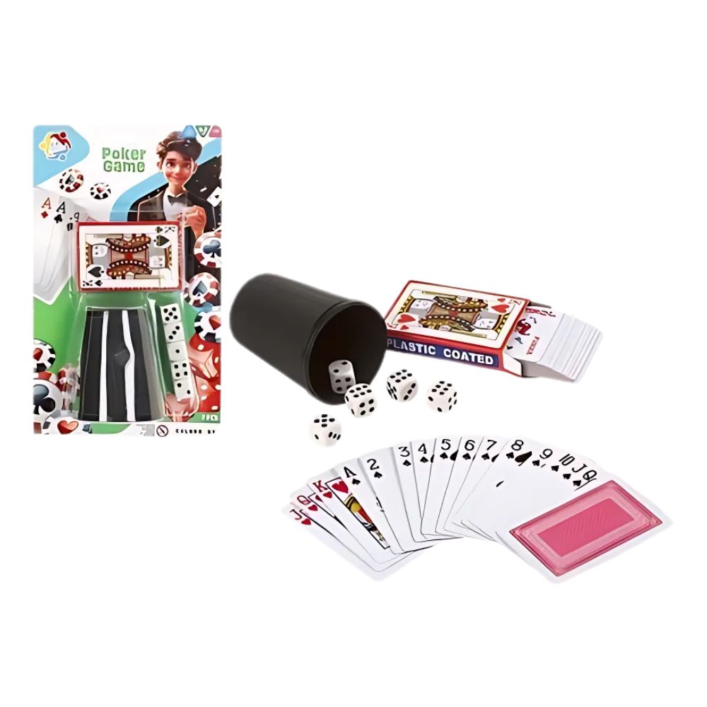 Set Póker Blister Baraja Cubilete Dados Color Baby Juego Mesa 24600