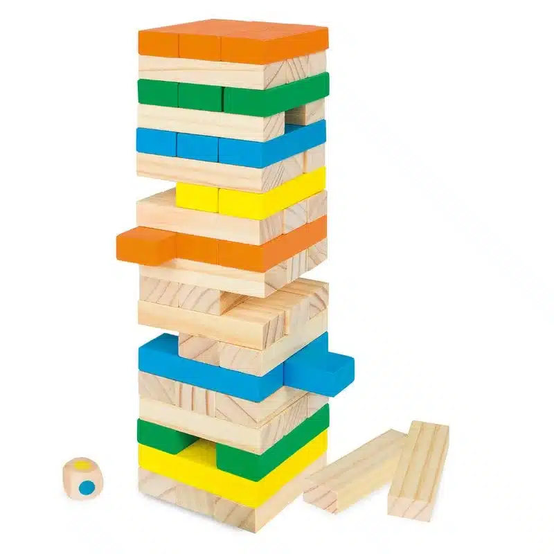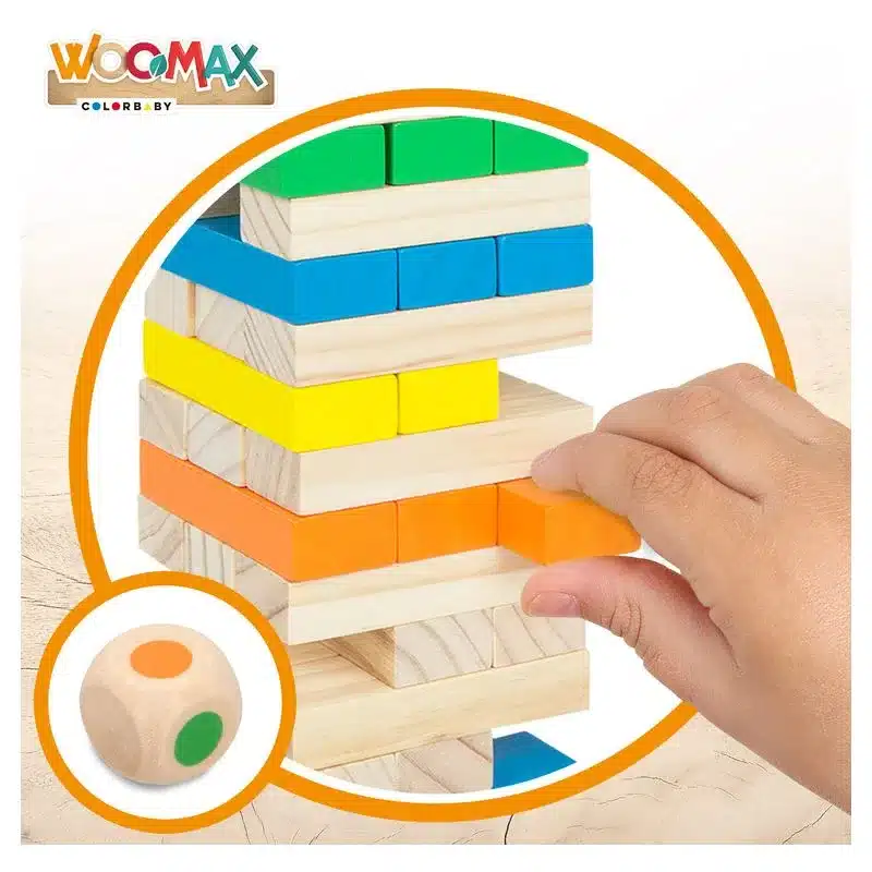 Juego torre de madera bloques 58 piezas con dado 43620 WOOMAX