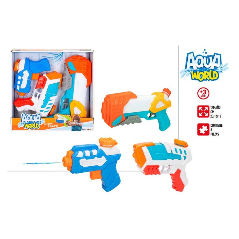 Pack 3 pistolas de agua Aqua World 47654 23cm 16 cm 13 cm COLOR BABY