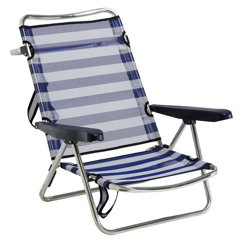 Silla de playa baja en color azul y blanco rayado 607ALF-56