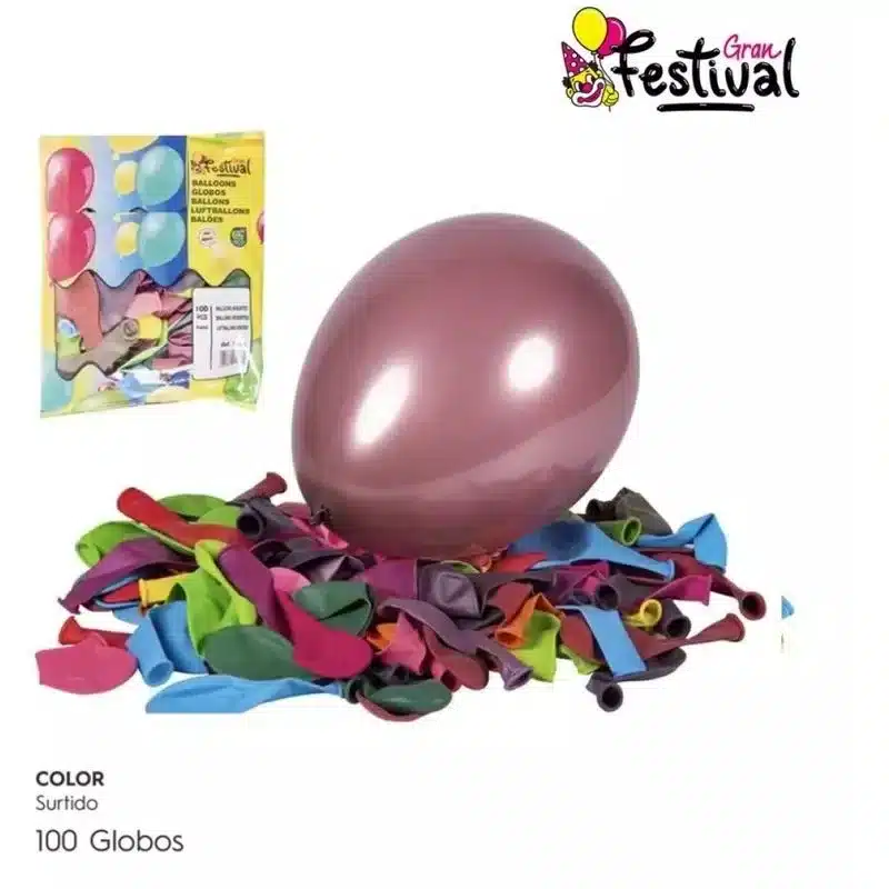 Surtido de globos de colores 100 unidades CB/11861 GRAN FEST
