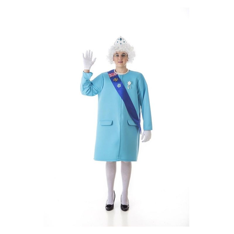 Disfraz Reina Isabel con abrigo azul claro y corona de adulto talla L