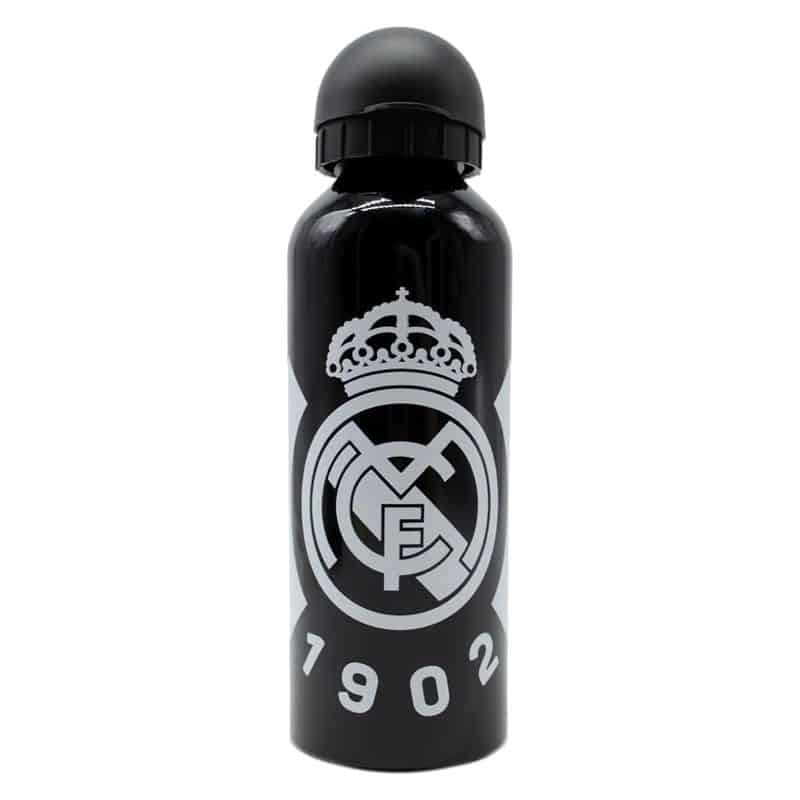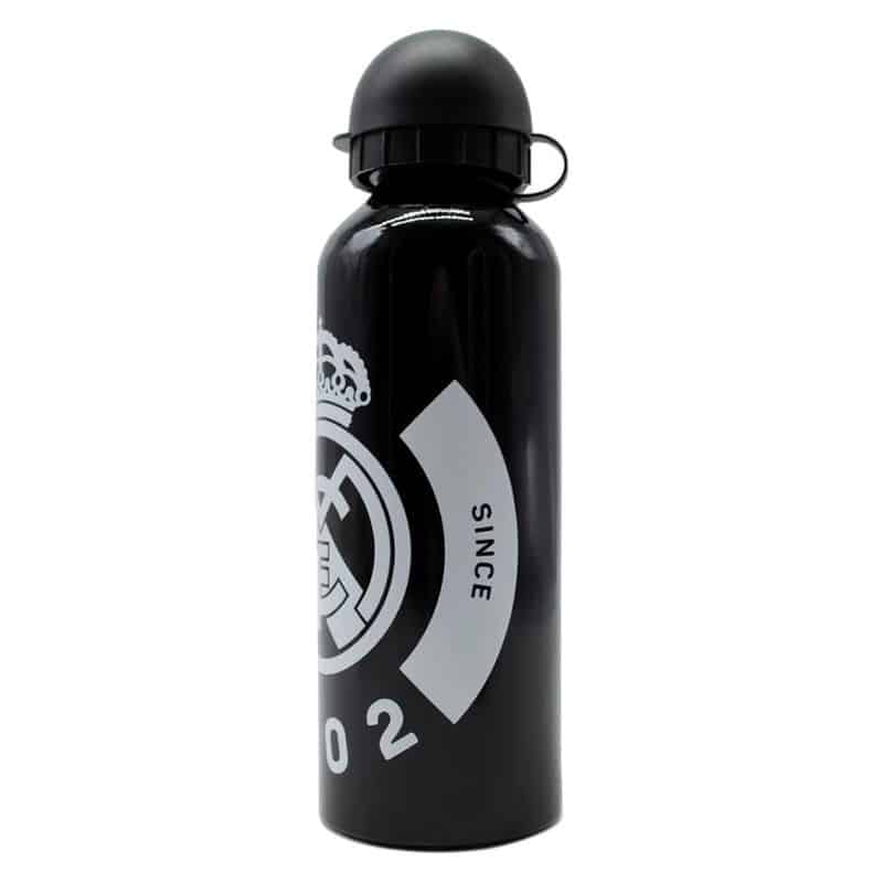 Botella de agua aluminio negra Real Madrid con escudo en blanco 500ml