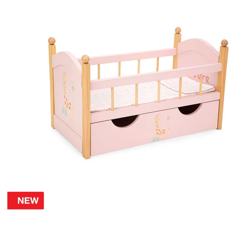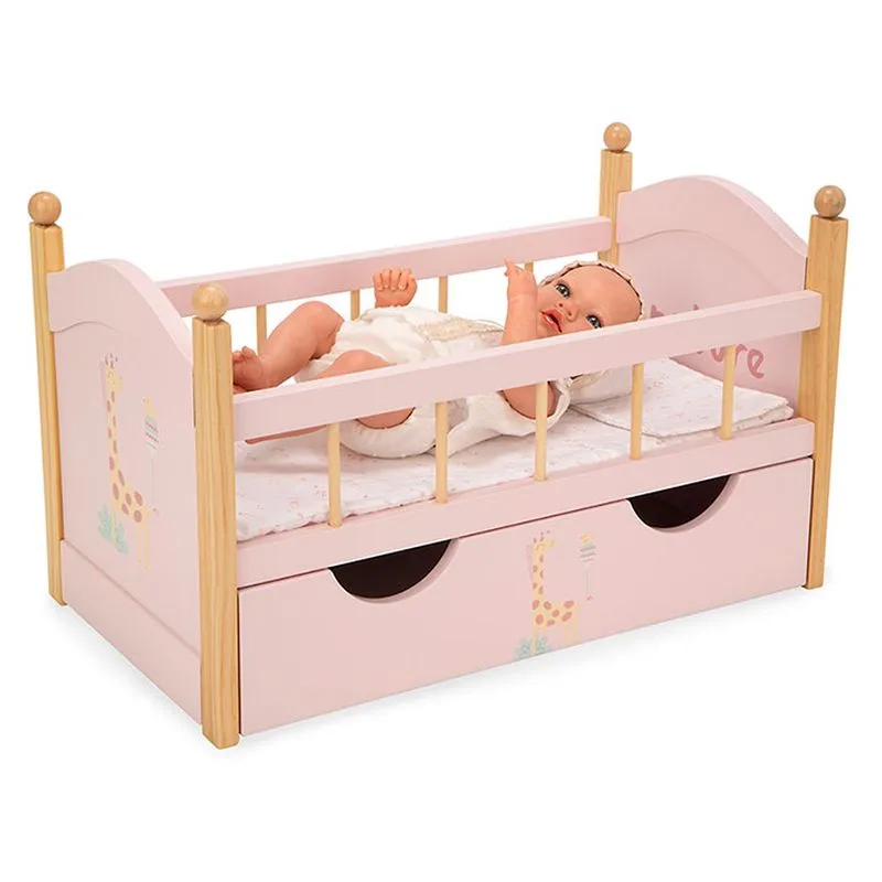 Cama de Madera para Muñecas con Cajón Nature Rosa 21584