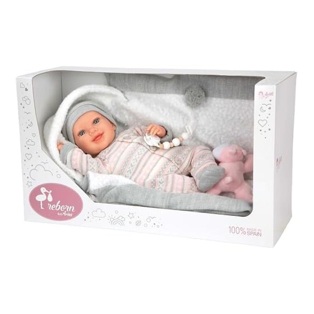 Bebé Reborn Nadia 40 cm Arias Realista Ropa Rosa Gris Accesorios 98184
