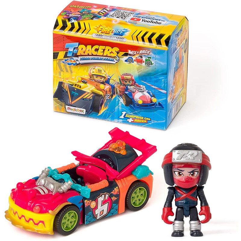 Caja T Racers Serie 3 Fuego y Hielo con piloto y vehículo sorpresa